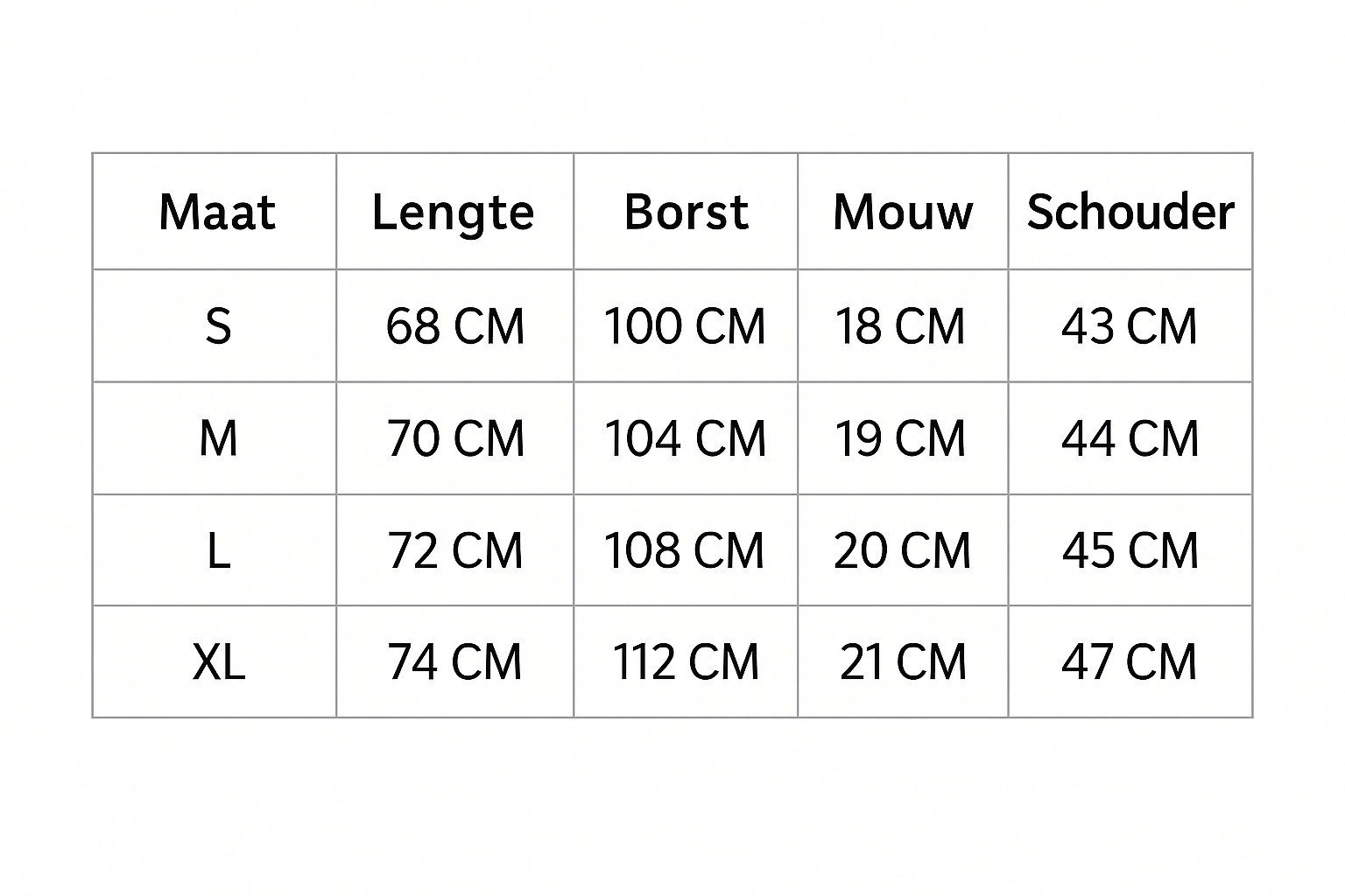 Verkrijgbaar in meerdere kleuren, maten S t/m XXL.